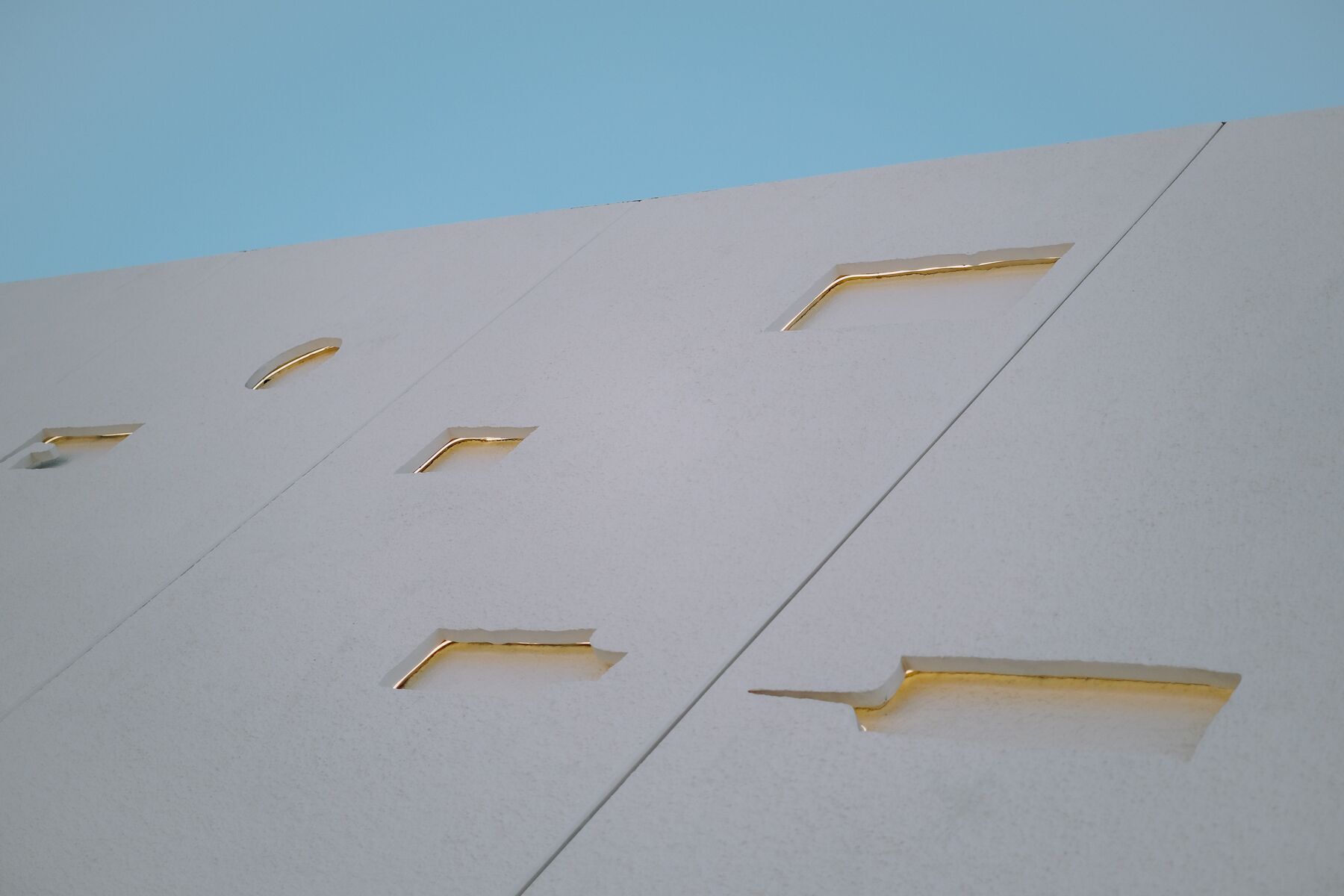 He returned to the idea of the original 1964 facade but placed an 8.5-meter-high airy row of slats in front of it. He describes it as “a curtain in front of a cinema screen.”