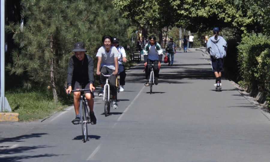 За 10 лет велосипедные маршруты появились в разных частях столицы Кыргызстана: на центральных улицах, в жилмассивах, в парках. Где-то разметку нанесли прямо на тротуары, а где-то — обустроили велодорожки, обособленные от проезжей и пешеходной части с помощью бордюров или зелени.