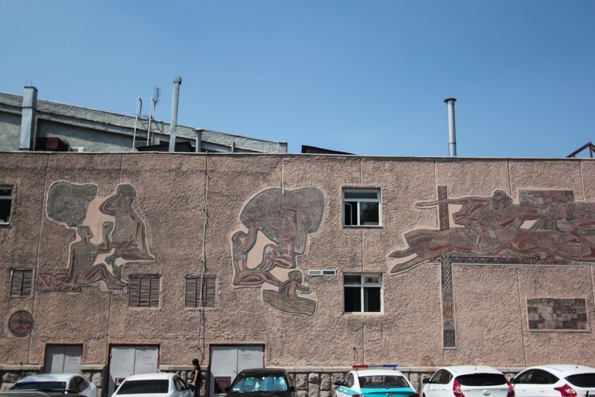 Основатель проекта бизнесмен Кайрат Боранбаев предложил оставить один из фрагментов испорченного сграффито: в 2001 году здесь сделали кассу. Стену с этим панно можно увидеть в кафе JER.