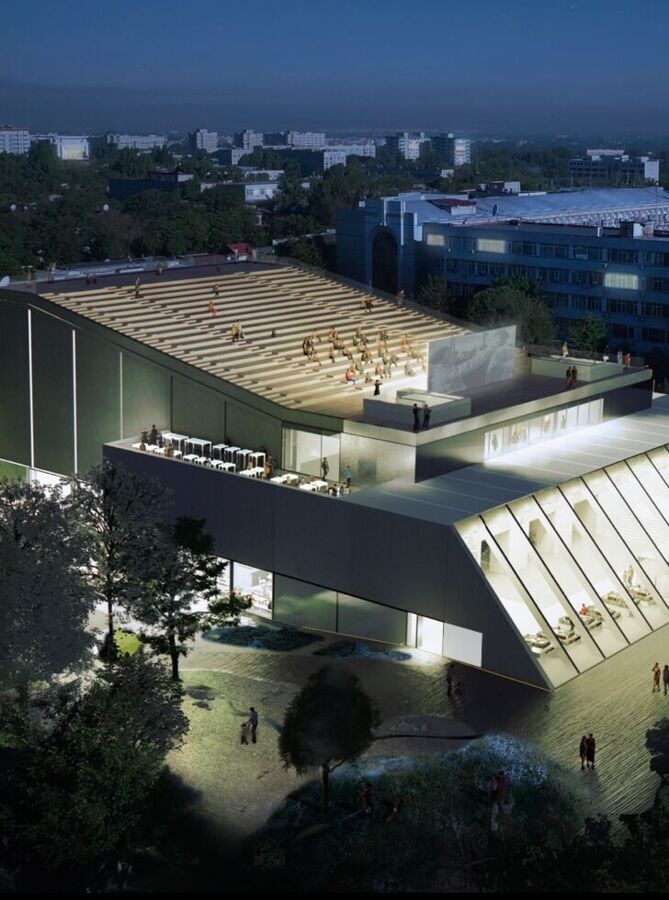 Изначально Боранбаев предполагал, что здесь будет находиться «трансформационный театр», но Джамиля Нуркалиева убедила его сделать гибридное арт-пространство: для выставок, перформансов, концертов, образовательных проектов для детей и подростков.