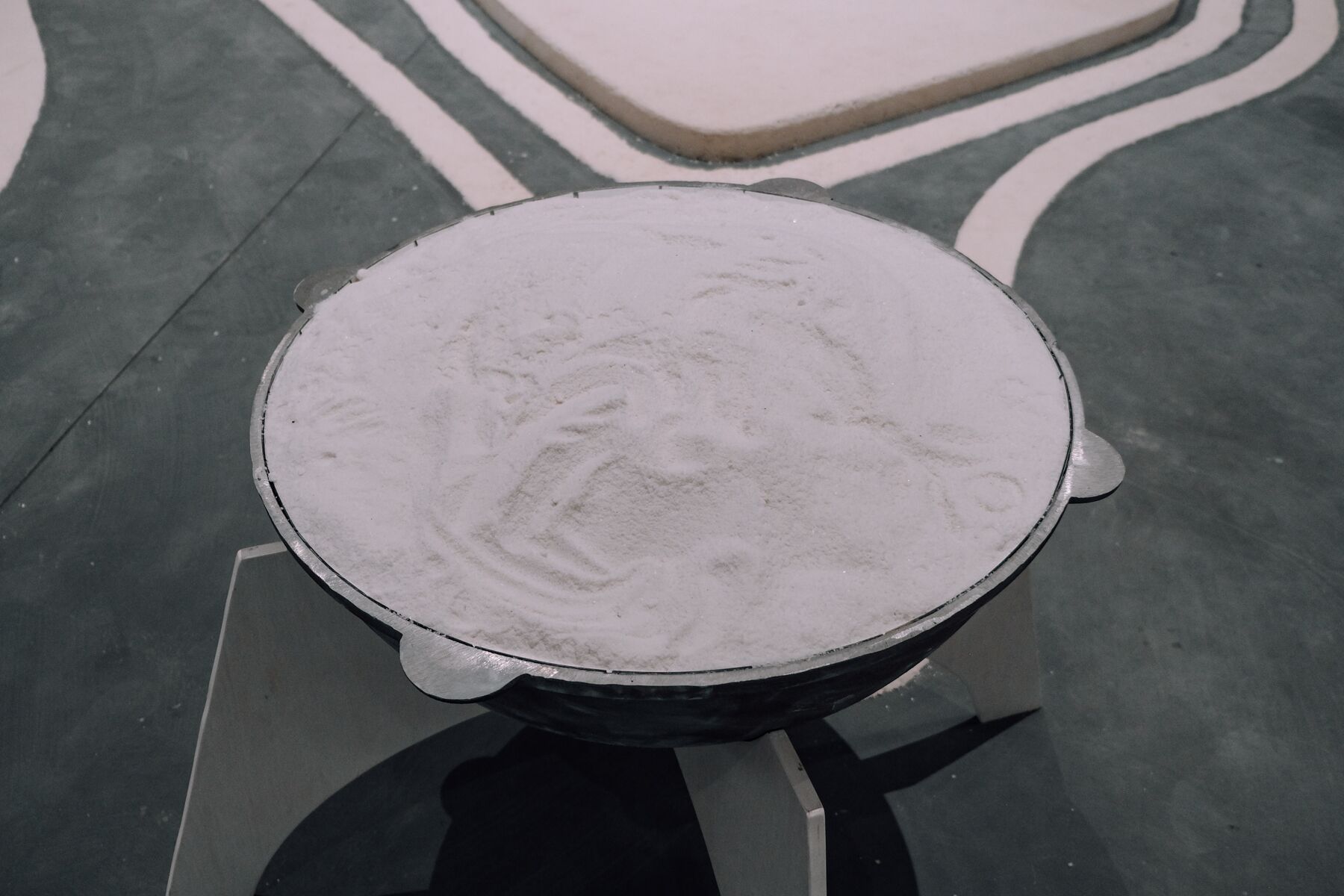 О старом кинотеатре напоминает огромный зал: когда-то здесь показывали кино, проходили фестивали и премьеры. Теперь это огромное пространство ORTA 3 для творчества, стены, выкрашенные в белый цвет, словно приглашают творить с нуля, с чистого листа. До декабря здесь будет проходить междисциплинарный проект BARSAKELMES, посвященный Аральскому морю. На полу выложены белые дорожки из затвердевшей соли, привезенной из этого региона. В планах проводить здесь ретроспективные кинопоказы с приглашением режиссеров — в этом огромном зале есть экран и кинопроектор. Так что кино из Целинного не ушло.