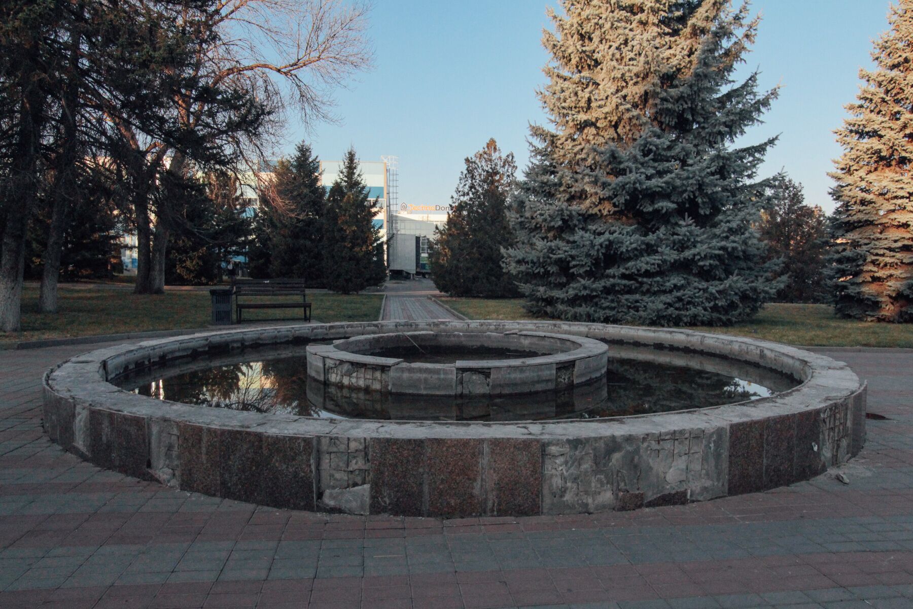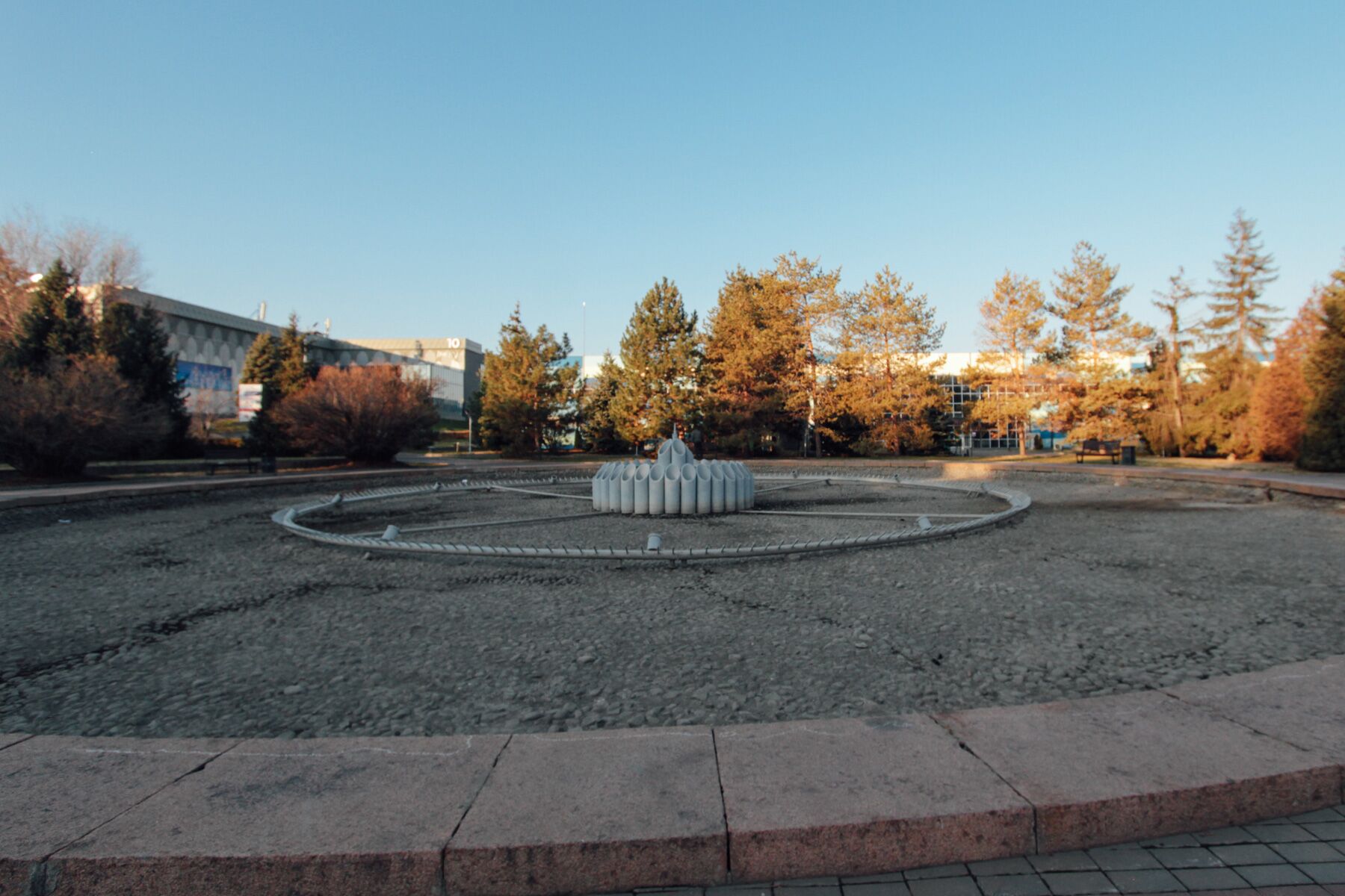 Ранним утром на территории «Атакента» пустынно. Редкие прохожие идут не на прогулку – им просто нужно пройти через комплекс в нужную точку. Несколько бегунов пересекают аллеи, а вокруг – только заброшенные, наполовину разрушенные фонтаны и редкие лавочки, напоминающие о том, что когда-то здесь планировали сделать пространство для отдыха. Вечером комплексу явно не хватает освещения – территория погружена в полумрак.