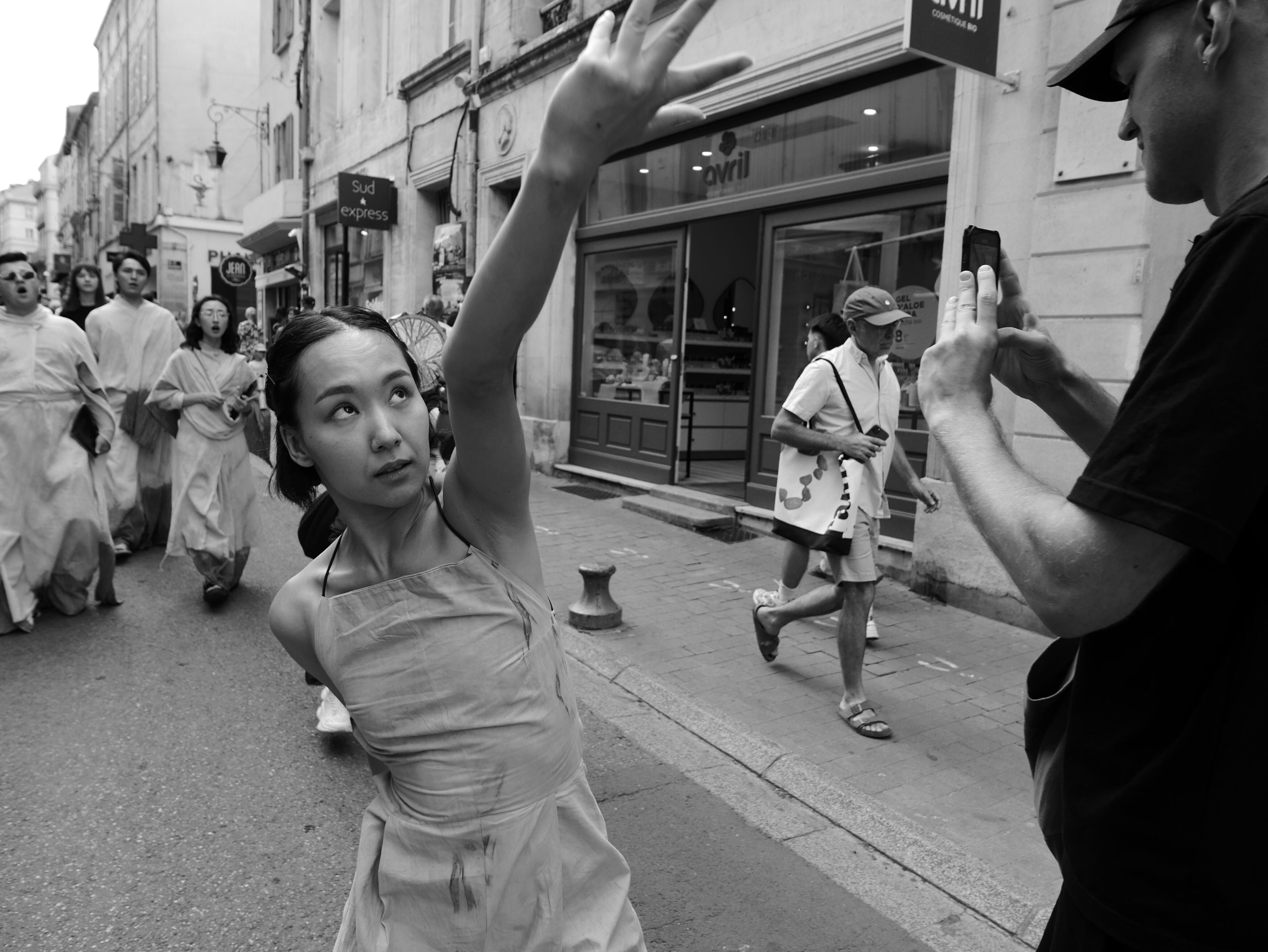 Каждый день за два часа до начала спектакля мы выходили на улицы Авиньона, раздавая сотни флаеров, улыбаясь тысячам прохожих и в 22:45 начинали своего Маяковского.