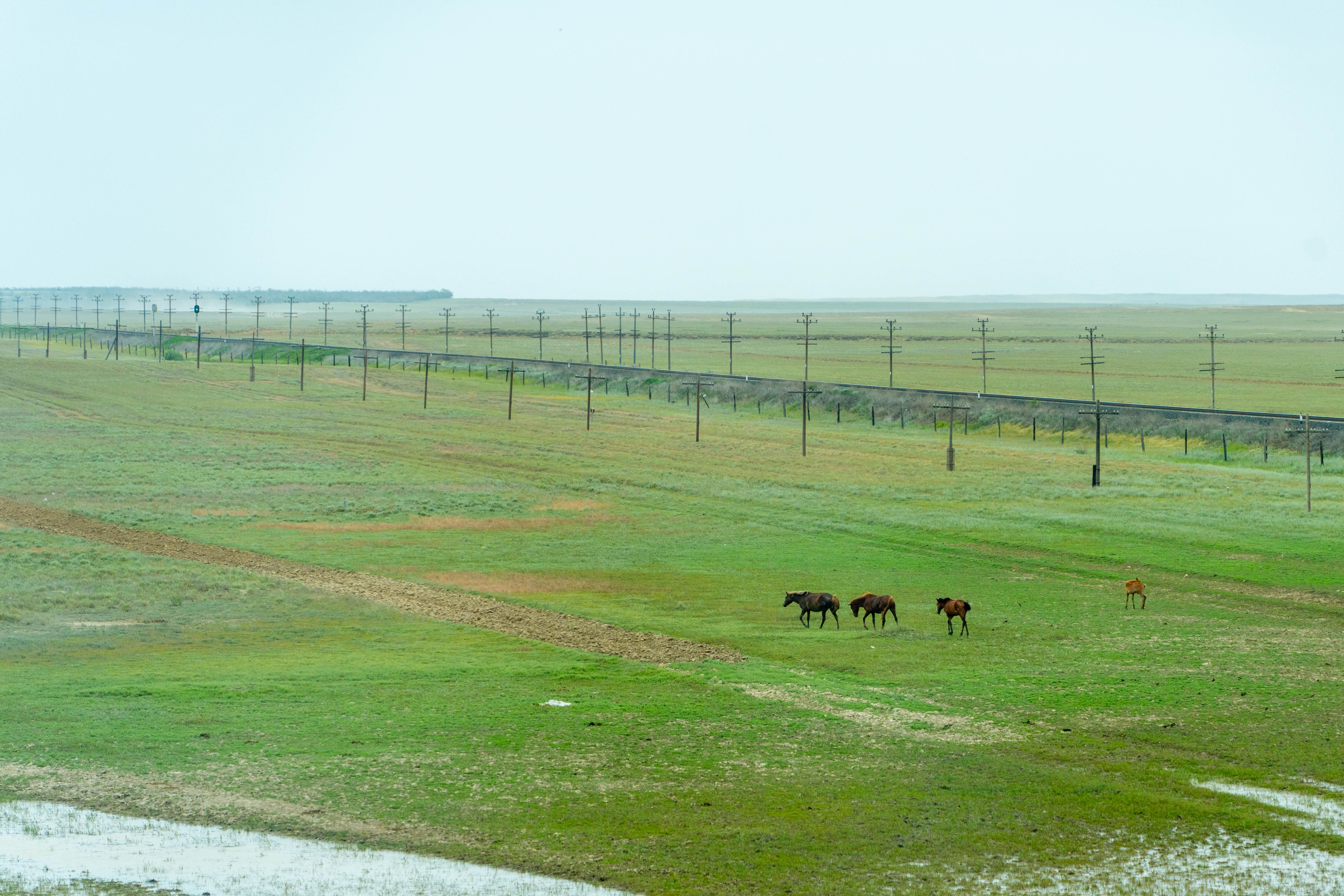 Дорога по этой части Казахстана — это особая категория медитации. Пейзажи неторопливо проплывают за окном: желтая степь, полупустыни, верблюды, железная дорога, редкие одинокие дома, полустанки. Они настраивают на философский лад и в голове у меня всё время звучит Чингиз Айтматов и его «И дольше века длится день». Спокойно и уютно.
