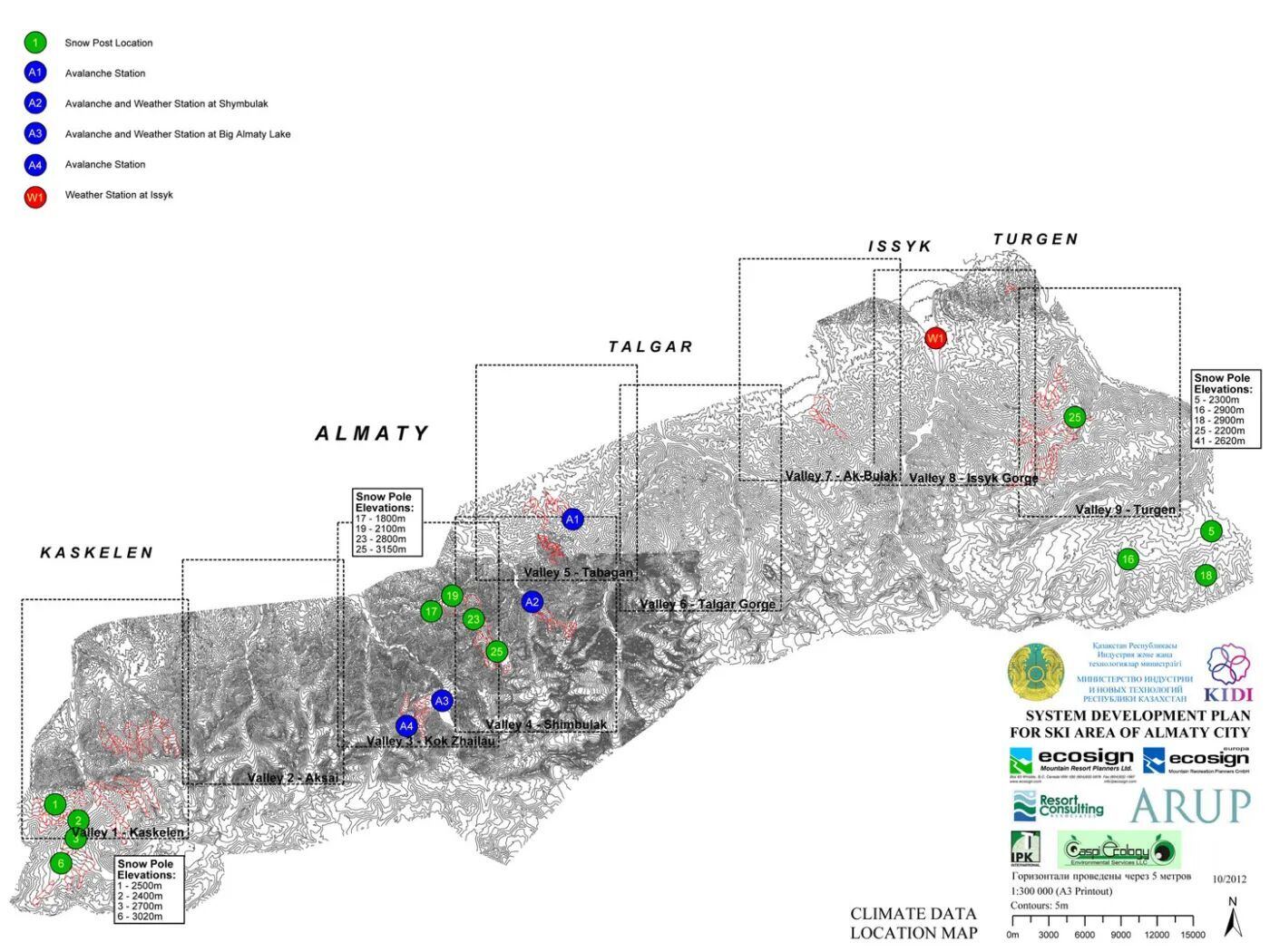 Проект охватит участки Малоалматинского ущелья и прилегающих к нему локаций, включая направление к пику Нурсултан, урочище Сухой лог, ущелья Кимасар, Бутаковка, Котырбулак, район горнолыжных комплексов «Пионер», «Алматау», водораздел ущелья Левый Талгар, а также район горнолыжного комплекса «Oi-Qaragai», урочище Ой-Карагай и горнолыжного курорта «Табаган».