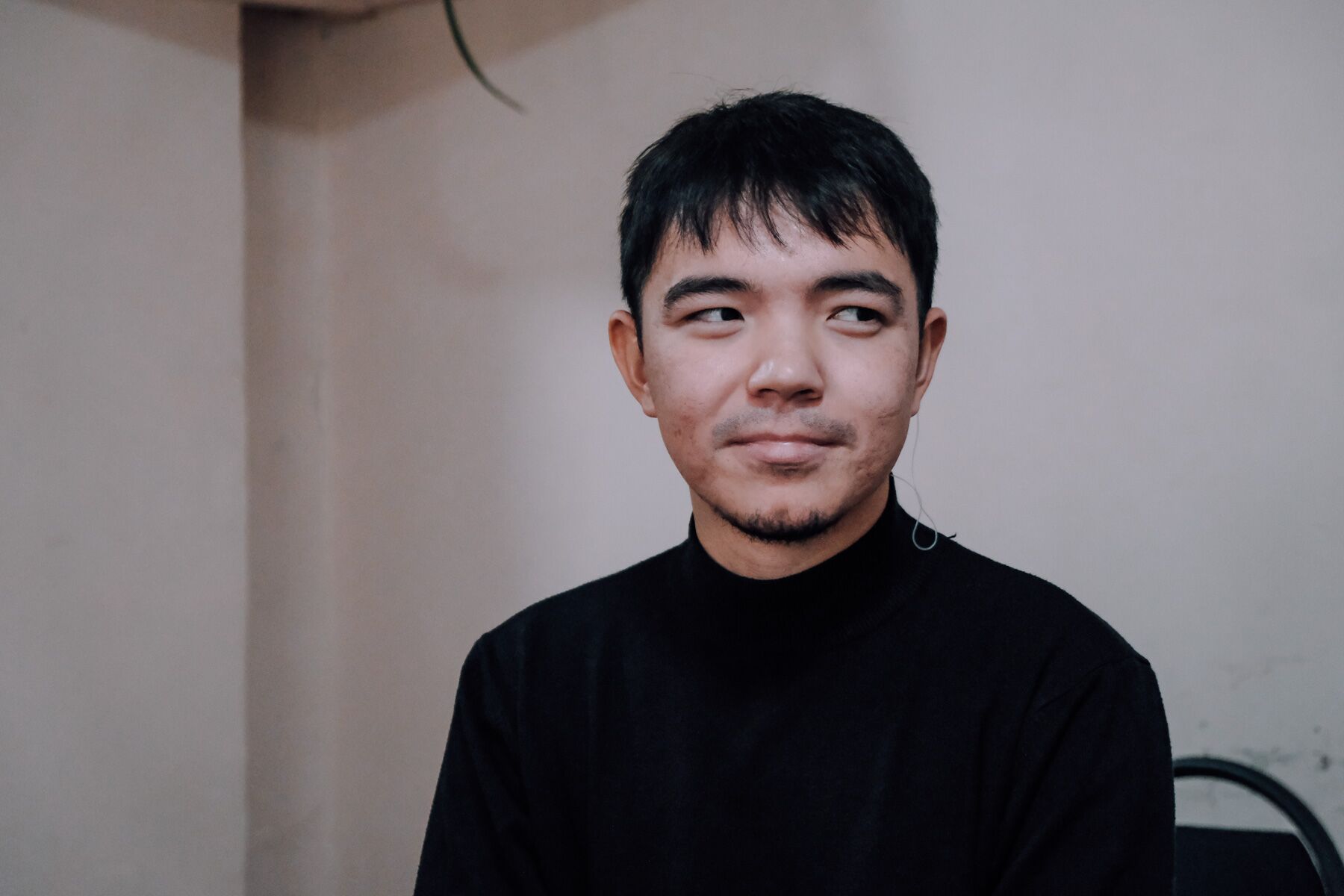 Елдосу Маратулы 26 лет, он работает здесь в «театре», в коллективе «Орлеу», с 2016 года. Когда-то окончил физкультурный, участвовал в международных конкурсах в России и Узбекистане. Но сейчас слабослышащие коллективы никуда не выезжают: нет денег.