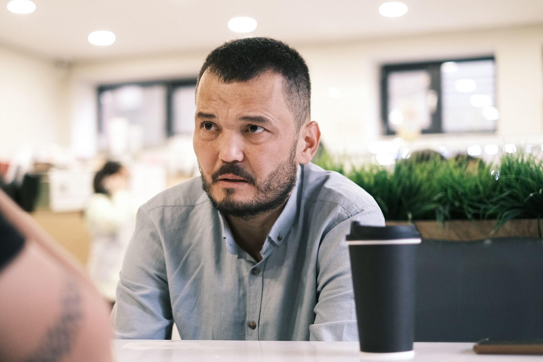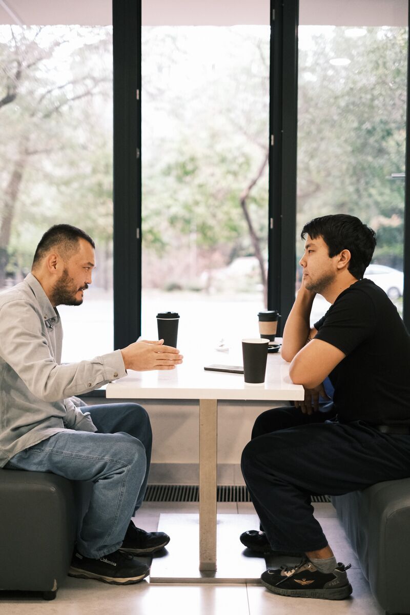 Мы находимся в полупустой алматинской кофейне, за окном пасмурно, начинаются холода. Акылбек Муратбай быстро отвечает голосовыми в Telegram, а затем улыбается.